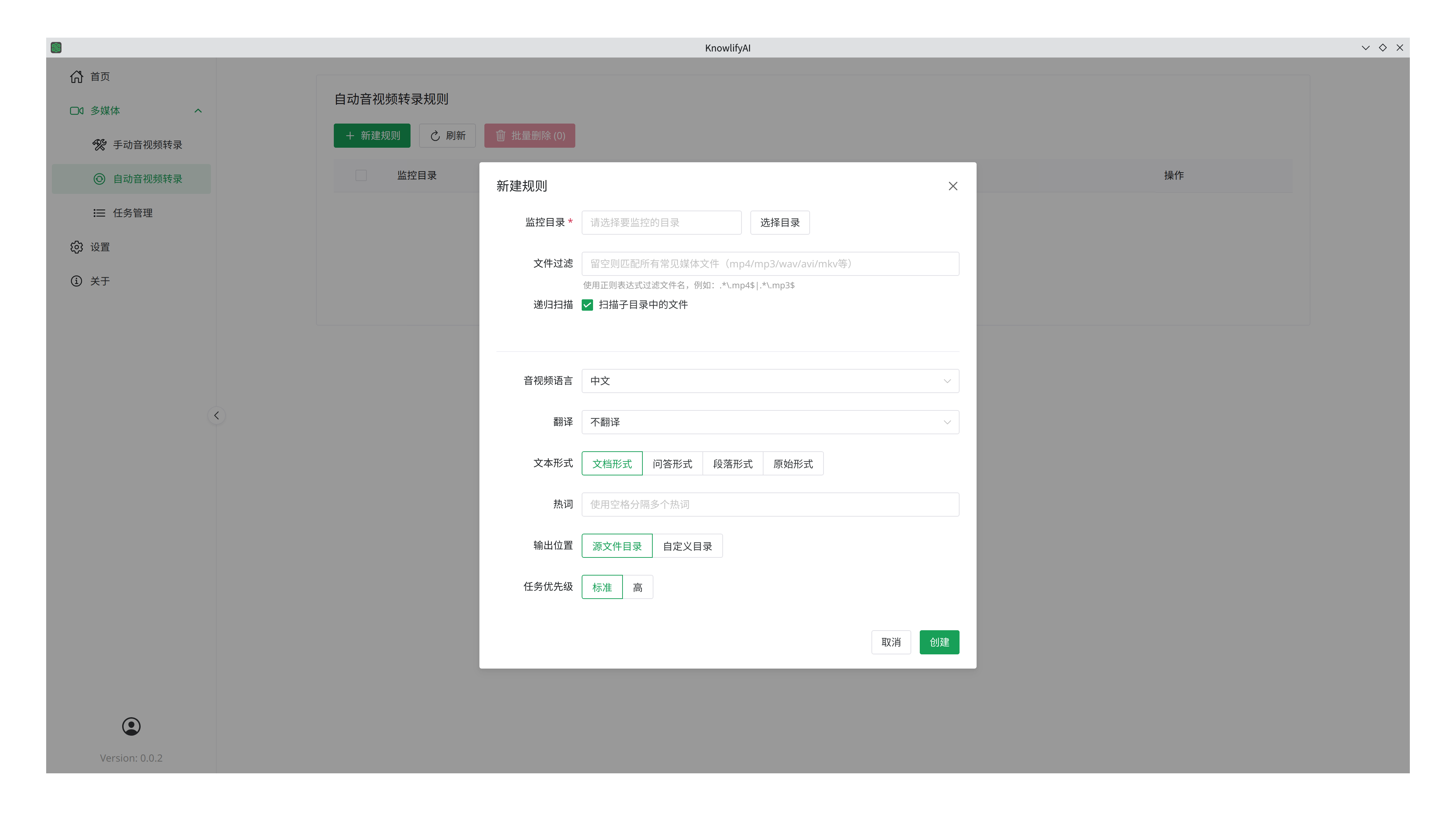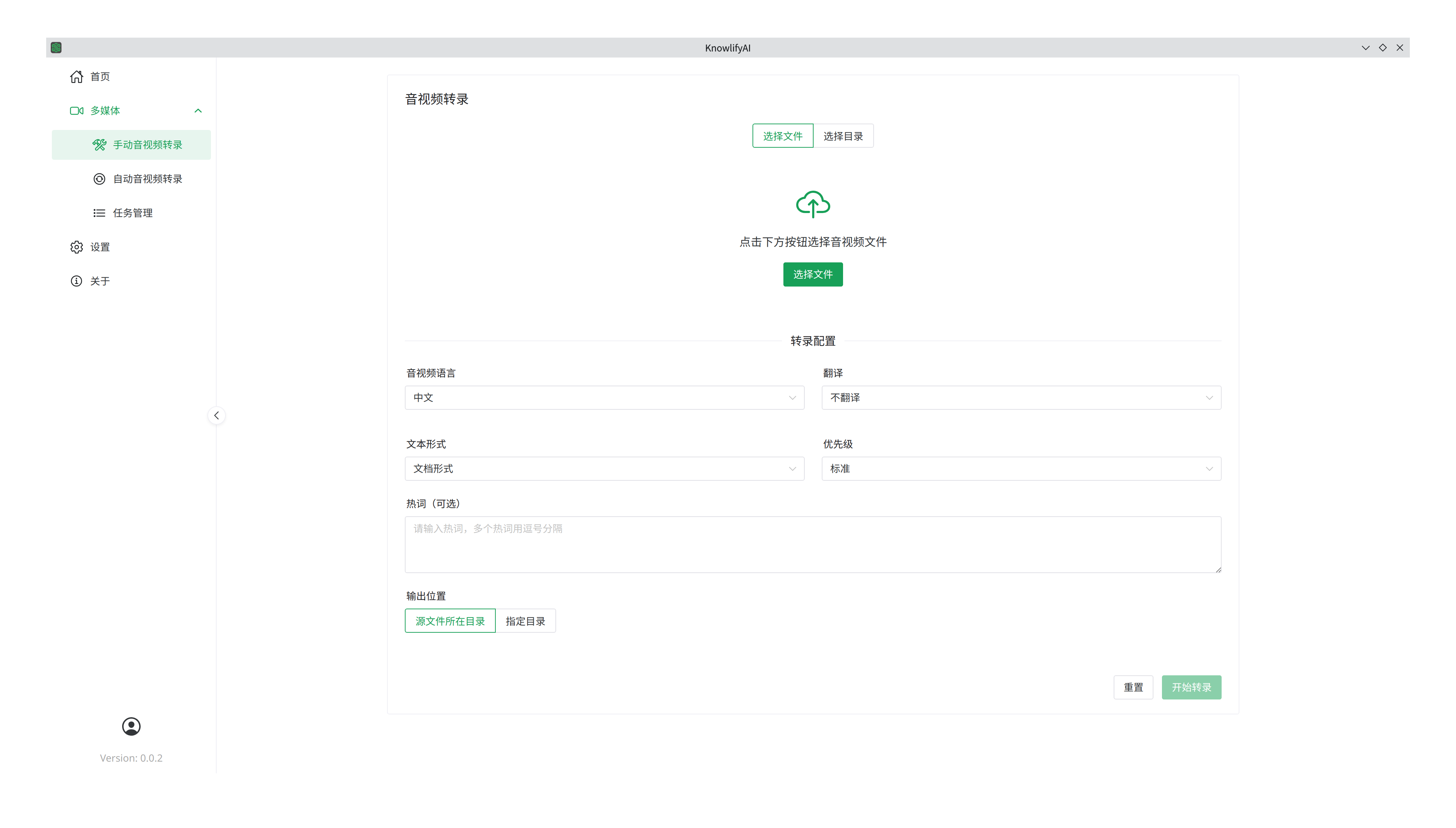 多媒体转录,即音视频转文本,使用该功能可以让你从任意音频和视频文件中识别出文本,使得可以做文字搜索,或者直接通过AI建成智能体,从而快速提升从音频和视频中获取知识的效率。