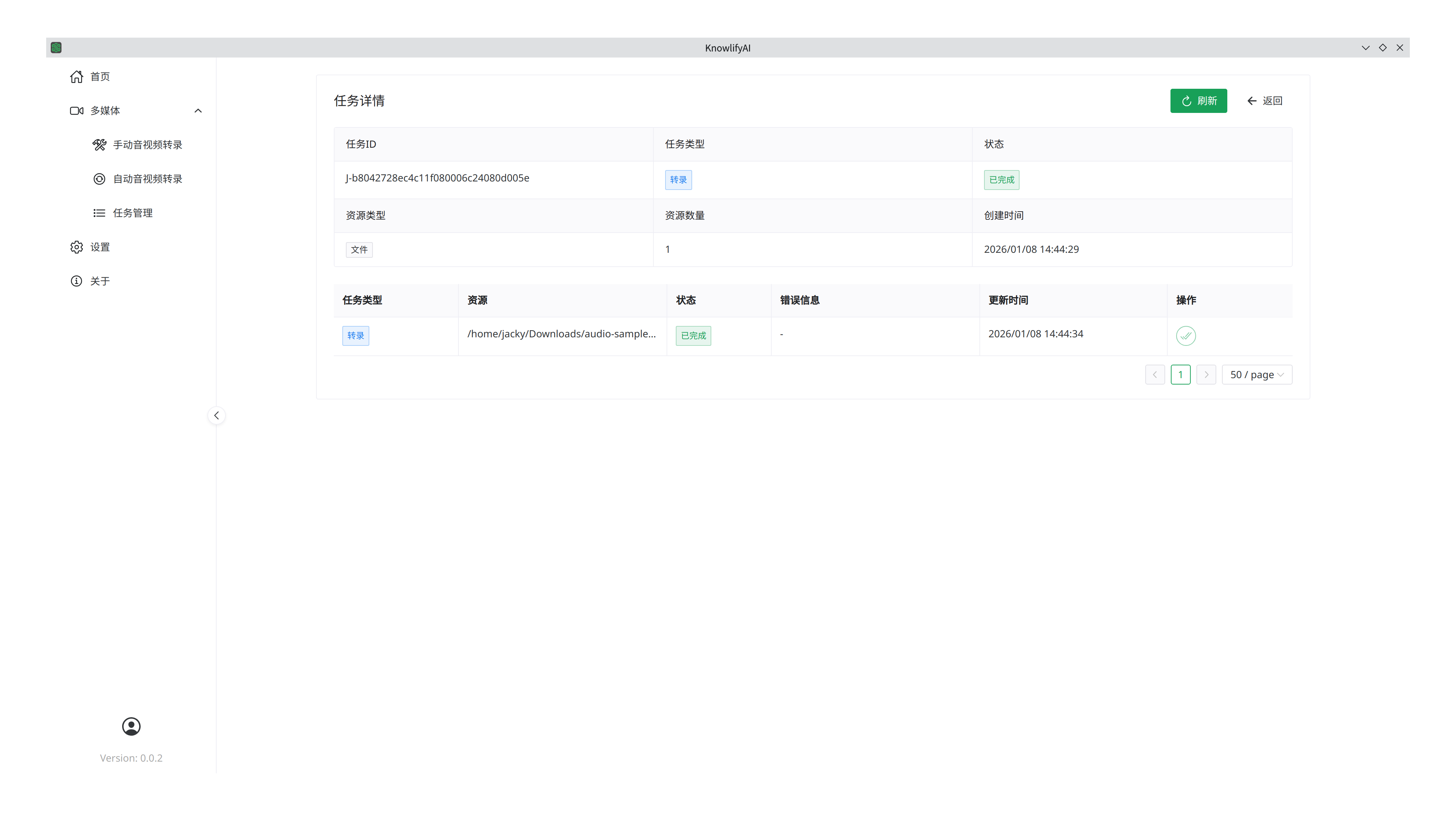 点击某个任务的详情后,将看到每个文件的转录进展和错误信息