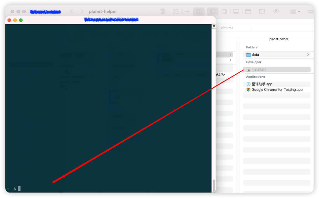 macOS和Linux则需要先打开”终端“,英文名叫”Terminal“,然后将”install.sh"拖到窗口中后敲“回车”让其运行。